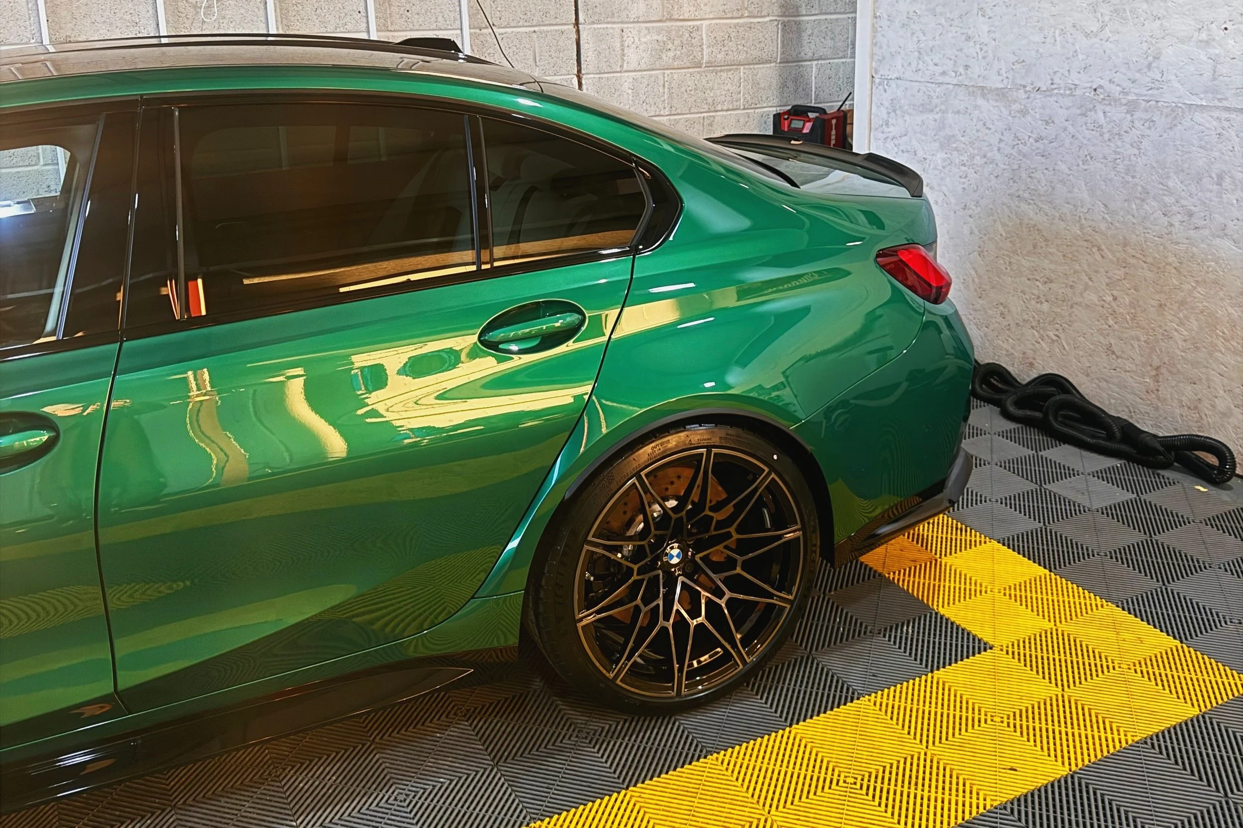 This package includes the application of a high-quality ceramic coating that provides a durable barrier against UV rays, dirt, road grime and environmental contaminants.